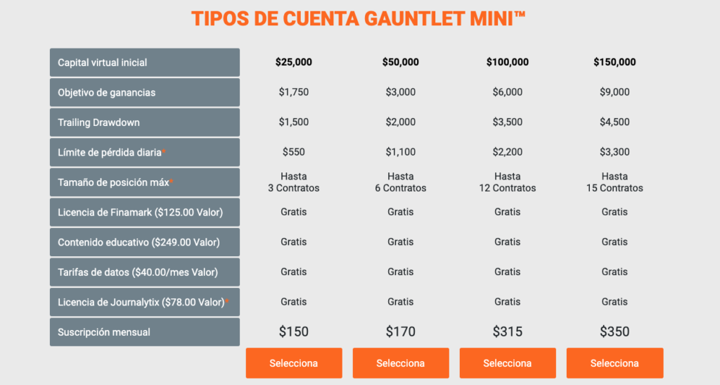 Gauntlet Mini ™ se enfoca específicamente en el trading intradía y está diseñado como una herramienta para reclutar traders intradía.